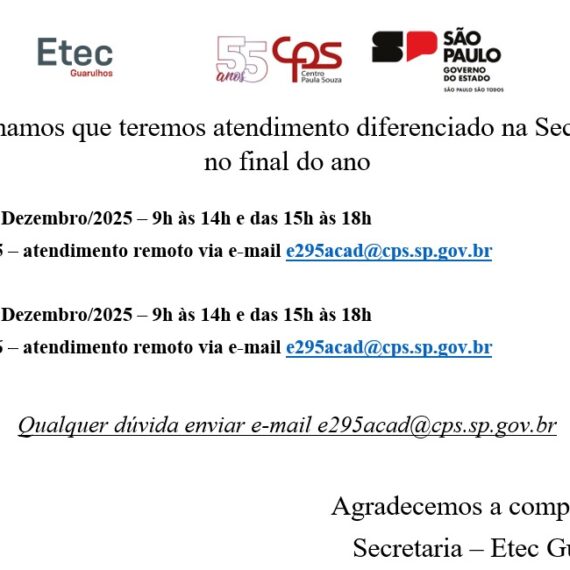 Para maiores dúvidas, favor entrar em contato através do telefone (11) 2447-4800 ou pelo e-mail e295acad@cps.sp.gov.br.