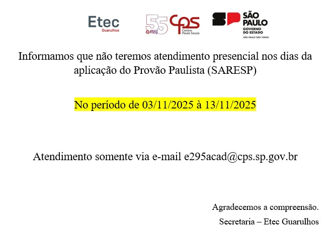 Informativo sobre atendimento na Secretaria no período do Provão Paulista