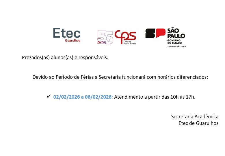 A Etec de Guarulhos informa os dias e horários referentes a terceira chamada dos aprovados no Vestibulinho Etec – 1º Semestre de 2026. Os alunos receberão as informações via e-mail e SMS com os documentos […]