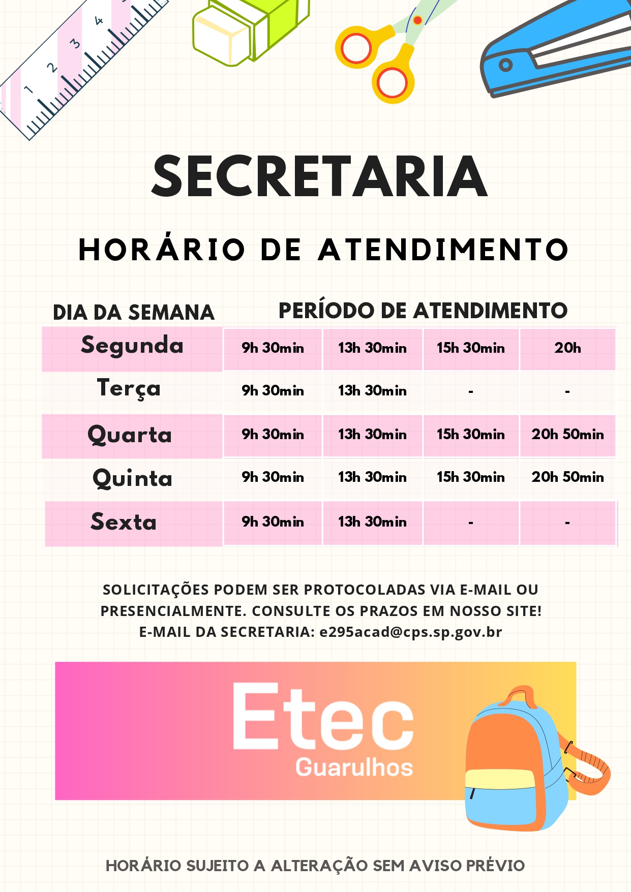 Contato da Secretaria Acadêmica: e295acad@cps.sp.gov.br