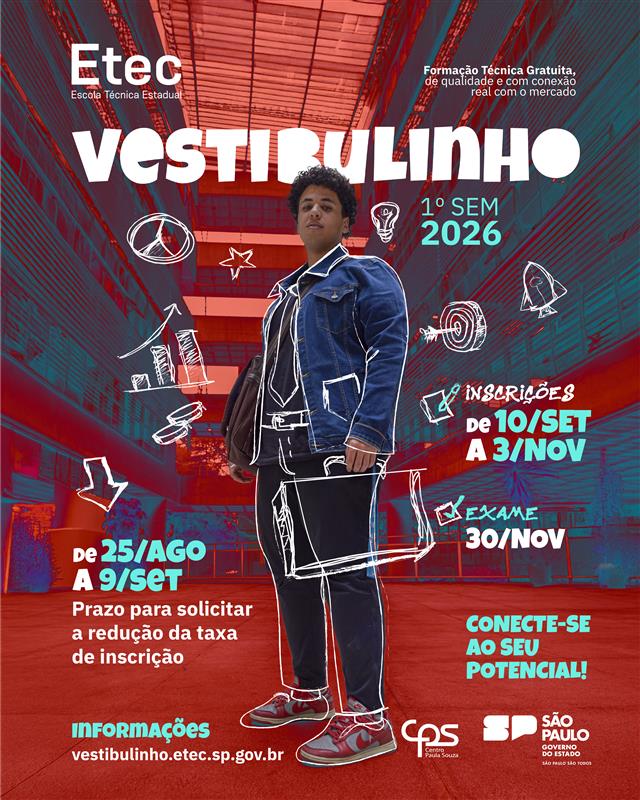 Os interessados poderão realizar suas inscrições a partir de 10 de setembro até as 23 horas e 59 minutos do dia 03 de novembro de 2025, exclusivamente pelo website vestibulinho.etec.sp.gov.br e o valor da taxa de inscrição é de R$ 29,00.